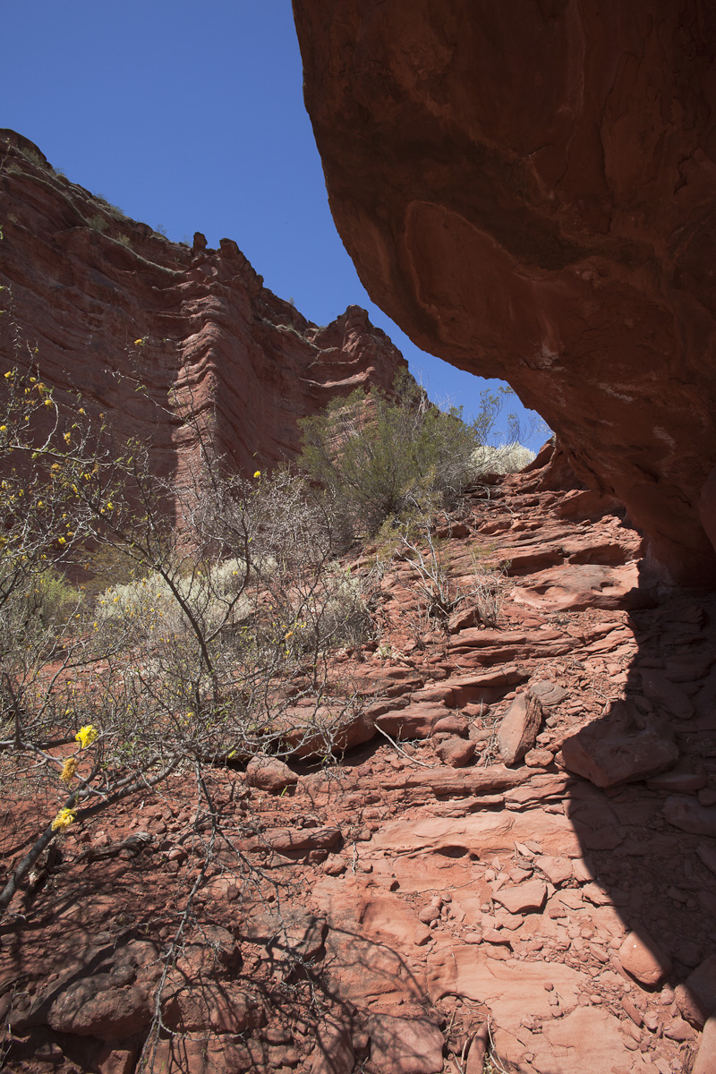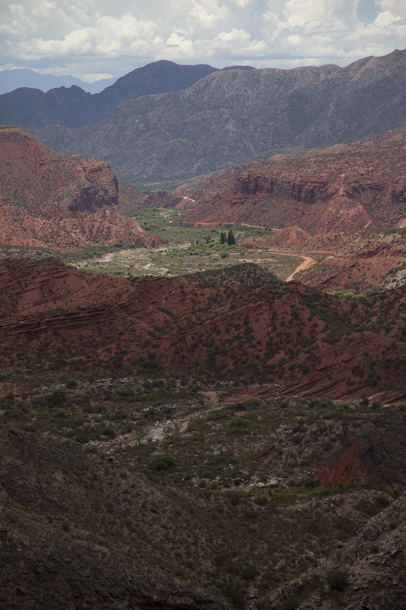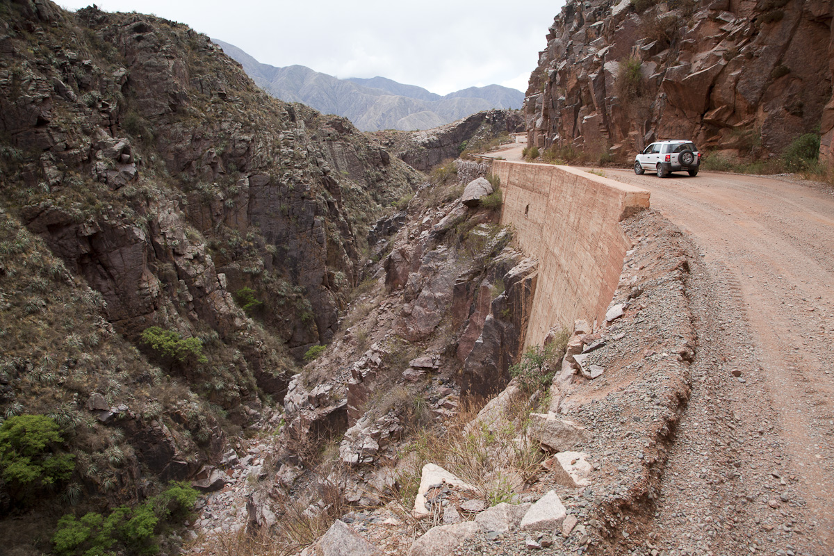 The 114, 80-curve gravel road was built in 1920 by Italian engineer Vicente Balloli and connects Villa Union and Chilecito. It is slow going around the treacherous precipice dropoffs, but the views are spectacular. I have now added my photographs to the large collection already floating around the Internet of this historic quebrada.