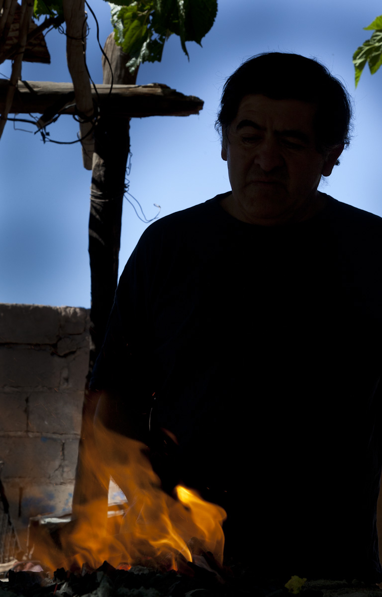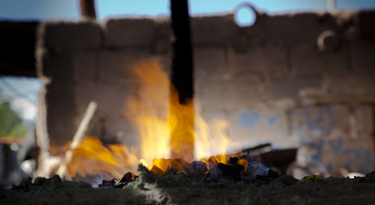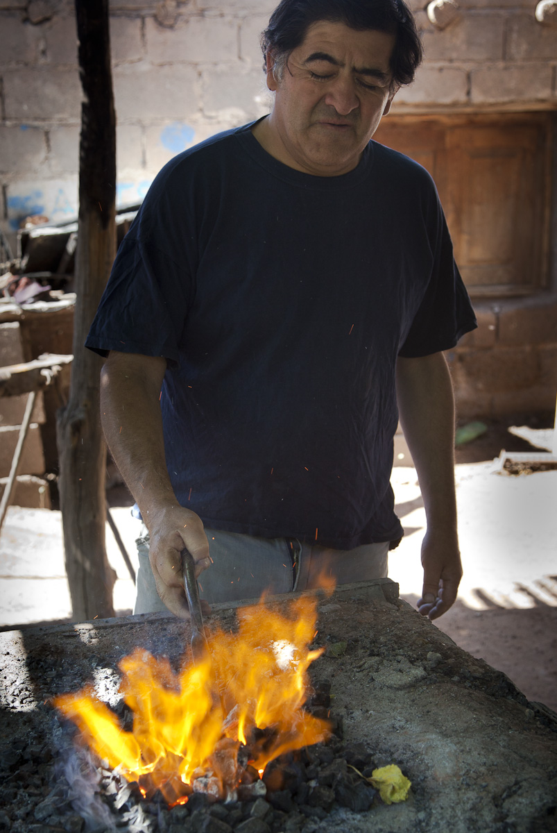 It was a combination of intuition and luck that brought us into the Cuchillos Artesanales storefront at Virginia’s suggestion. The forging area was behind, hidden from the street. It was the same as I remembered, outdoors, covered by a roof of leña held up by buried rustic posts.