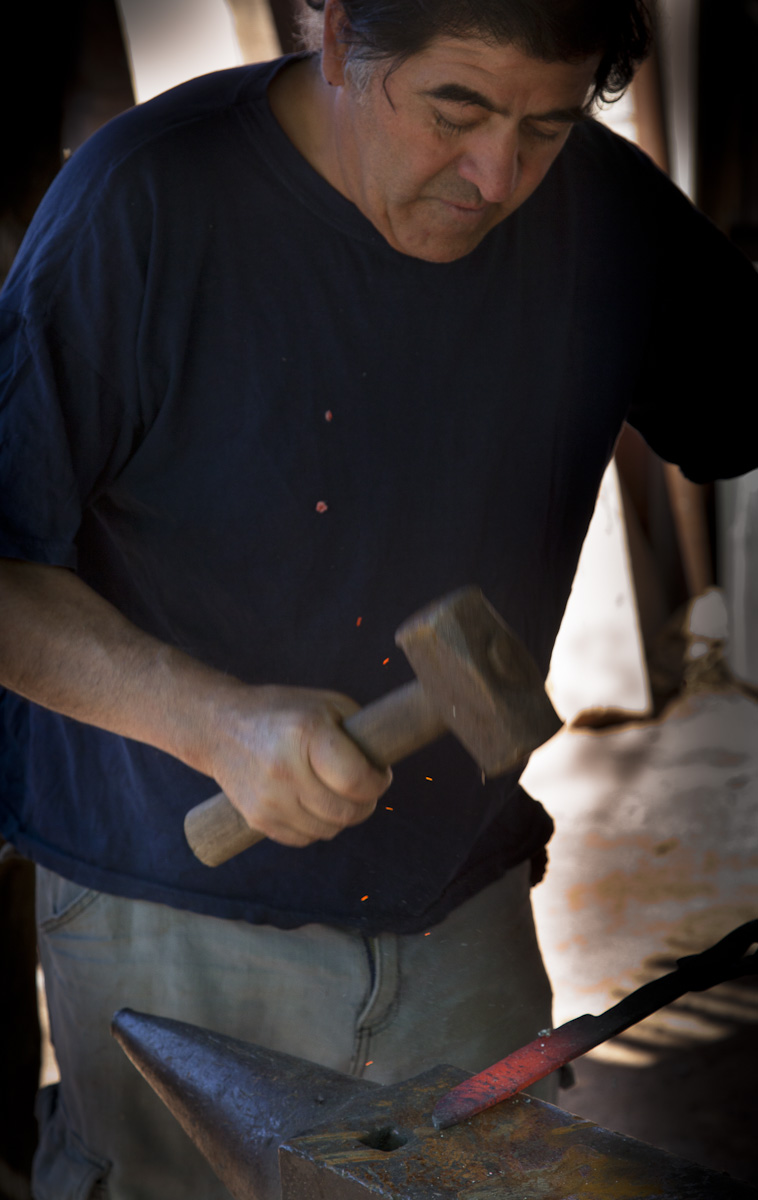 The blacksmith of Villa Union was a friend of my father’s. I used to watch him pound the red hot iron slabs into shapes of knives that he later hand-polished into shining steel blades. He would let me crank the blower to keep the coals hot.